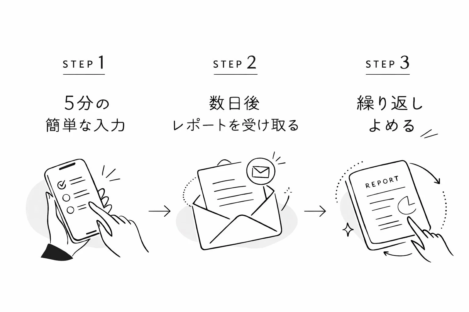 ご入力いただいた情報をもとに、何度でも読み返していただけるレポートとしてお届けします。